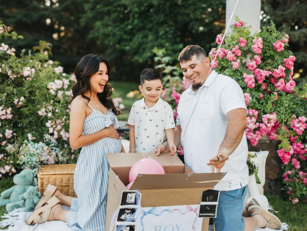 The second they opened the box, Mom’s face lit up with surprise and joy, Dad couldn’t stop smiling, and big brother’s excitement was everything. It was such a sweet moment, authentic, unposed, and full of real reactions. And, they had no clue it was a girl, mom and dad both thought baby was a boy!