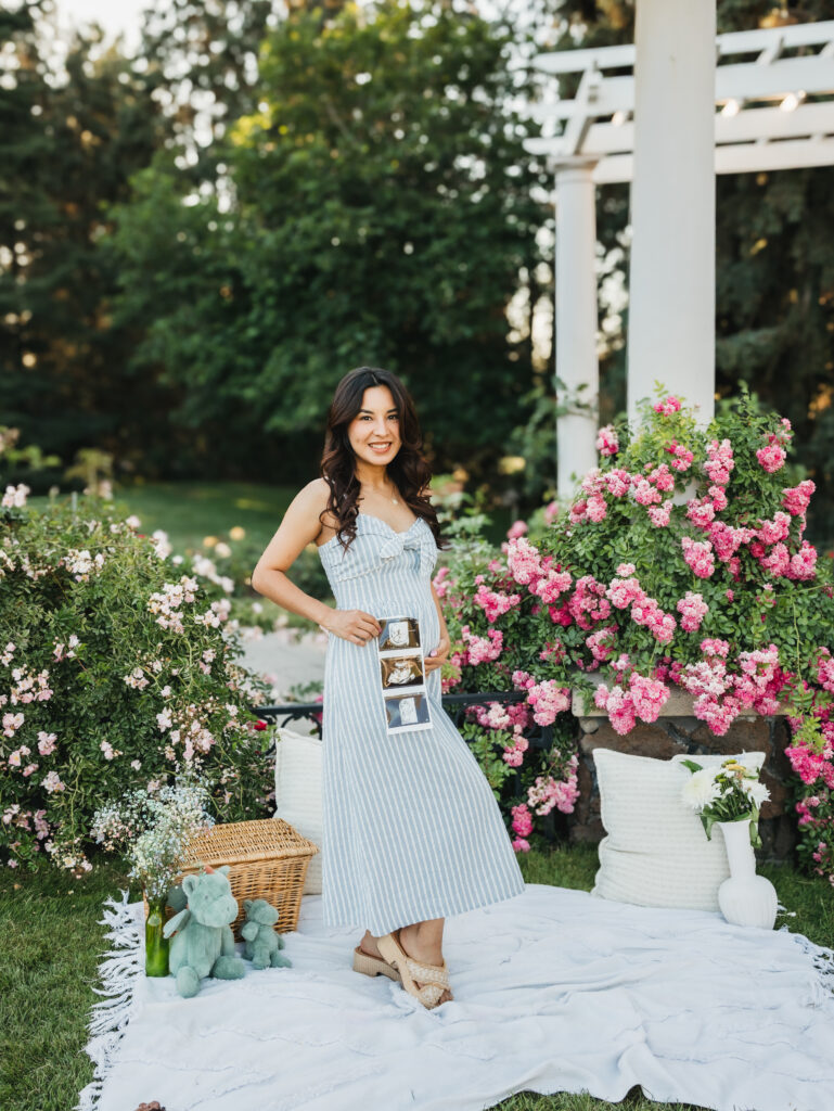 Recently, I had the sweetest session with this beautiful Spokane family, celebrating their growing family with a gender reveal photoshoot surrounded by the most vibrant roses. As a Spokane photographer, Manito Park is one of my favorite places for family, maternity, and gender reveal sessions because every corner feels like a whimsical garden.